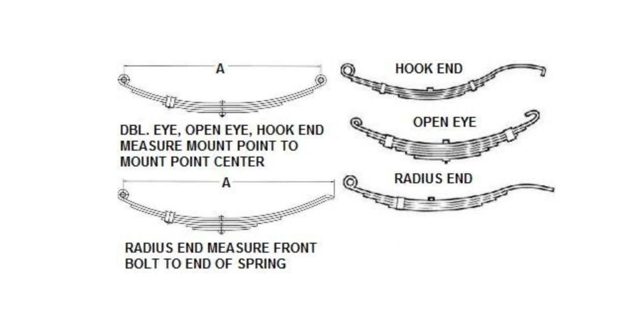 Slipper springs radius end, open eye and hook end see below table for specifications.